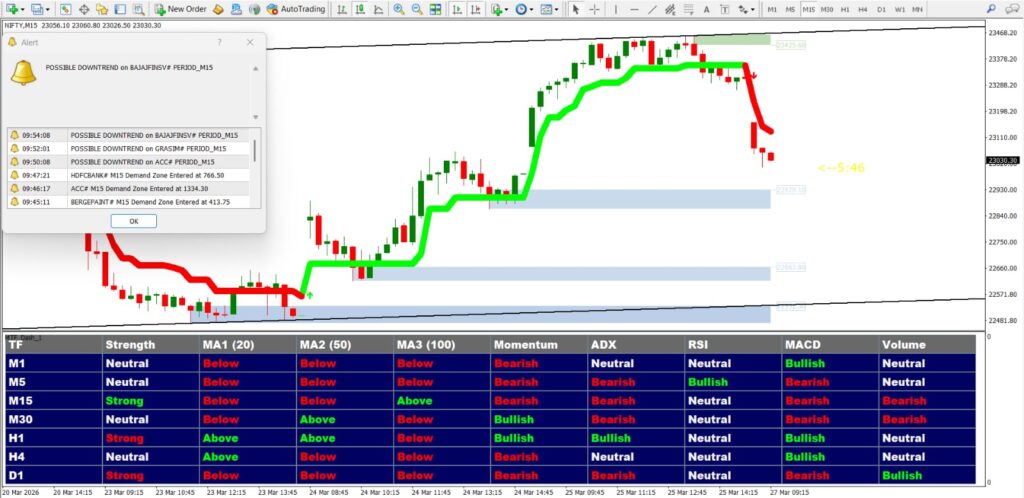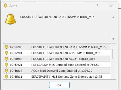 You’ll also receive real-time popup alerts whenever price approaches the important zones or dynamic trend indicator changes trend on any open chart, ensuring you never miss a potential trade setup. This feature helps you to trade smarter.