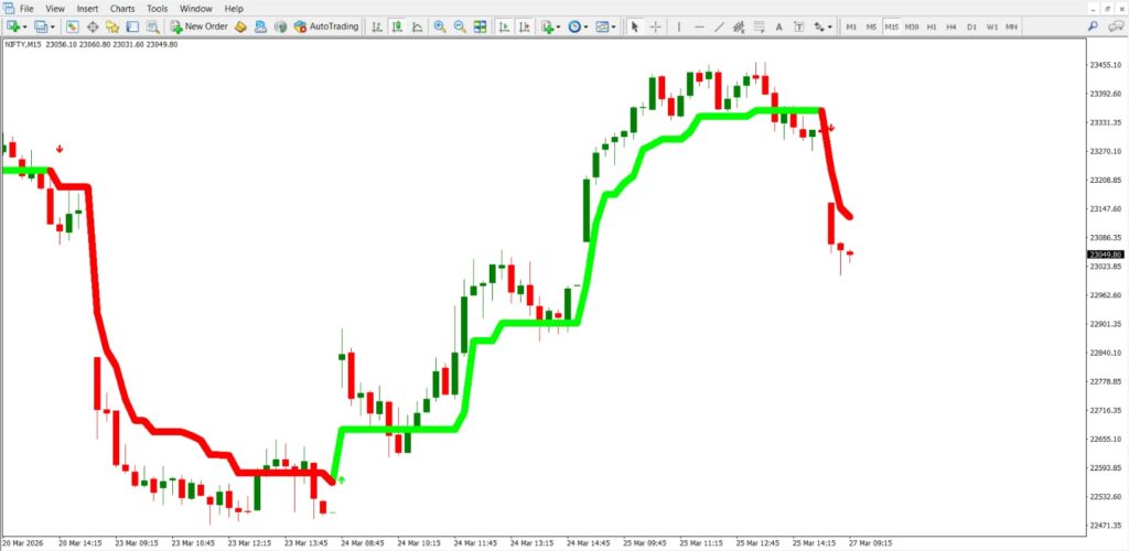 Our intelligent SuperTrend indicator dynamically shifts between green and red to highlight bullish or bearish trends, helping traders easily identify ideal entry, exit, and stop-loss points with precision.