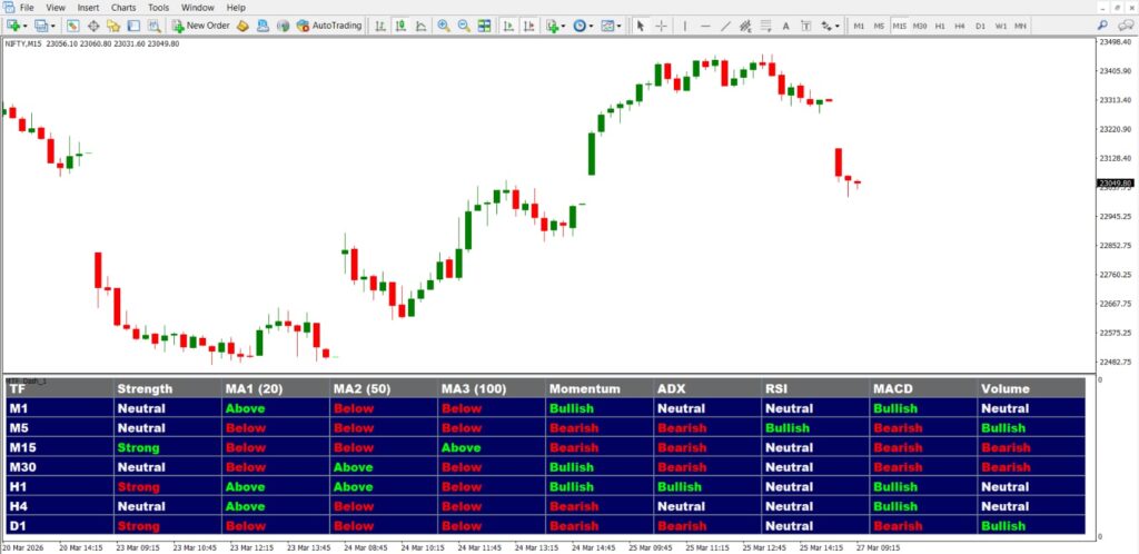 Multi Timeframe Technical Analysis Dashboard shows key market indicators across different timeframes in one simple view.